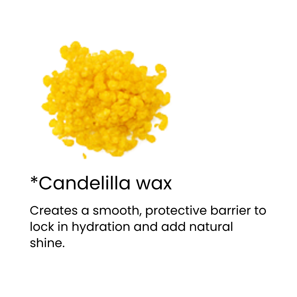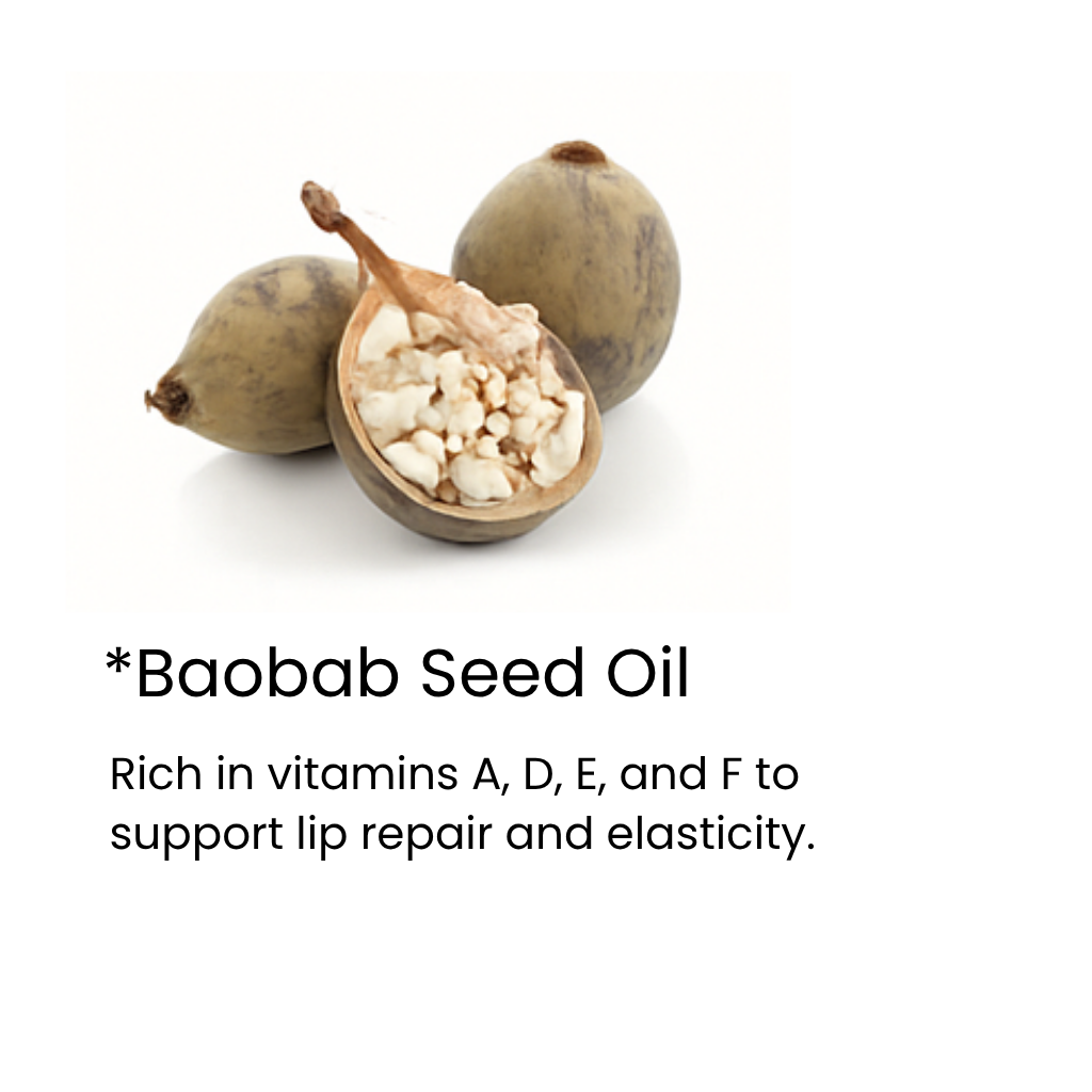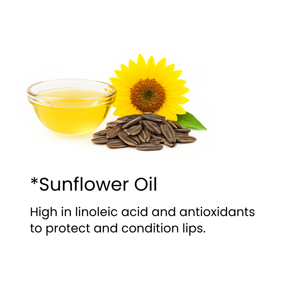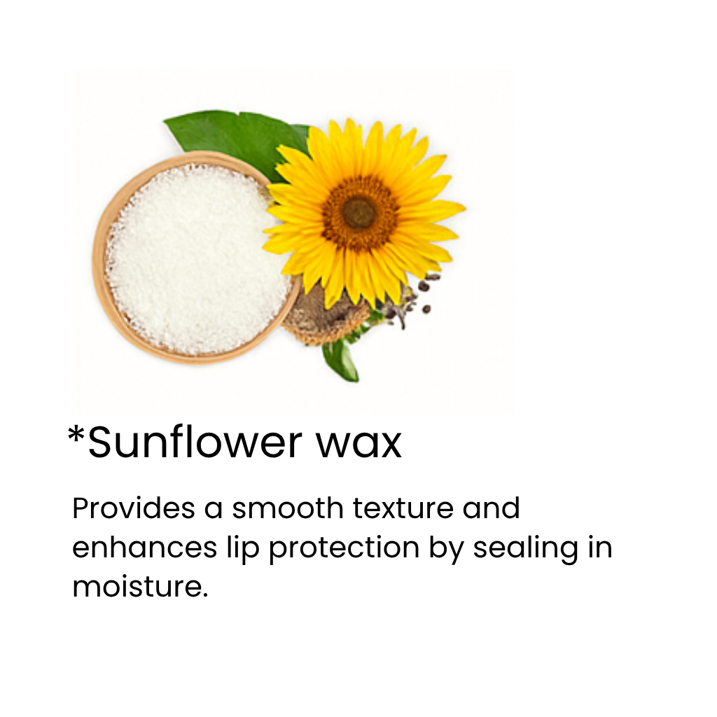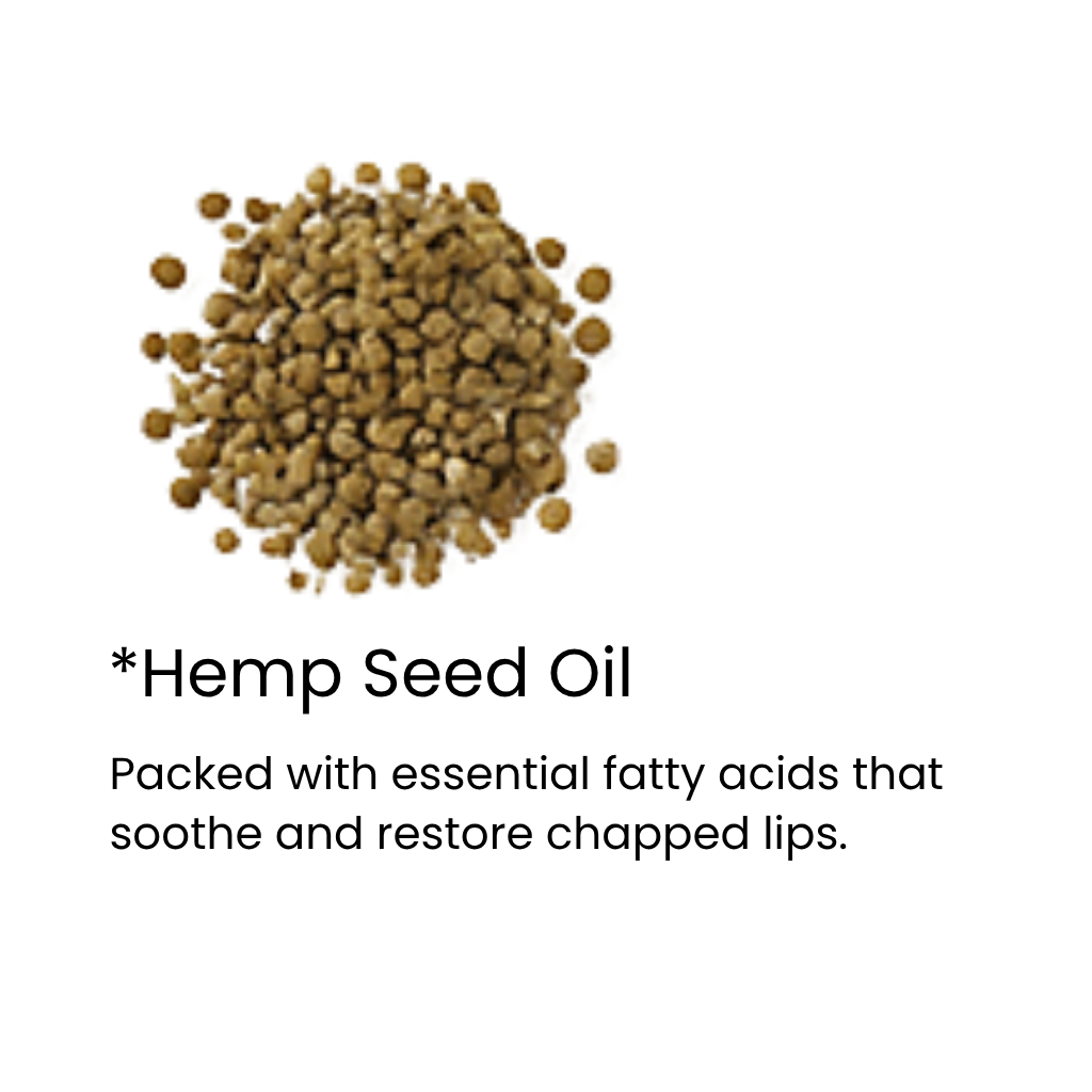 Base Lip Balm Ingredients: Meadowfoam Seed oil*, Shea butter*, Candelilla wax, Jojoba oil*, Hemp Seed oil*, Castor oil*, Cocoa Butter*, Babassu oil*, Baobab Seed oil*, Sunflower oil (high linoleic)*, Sunflower wax, Natural Vanilla flavor oil, Vitamin E*